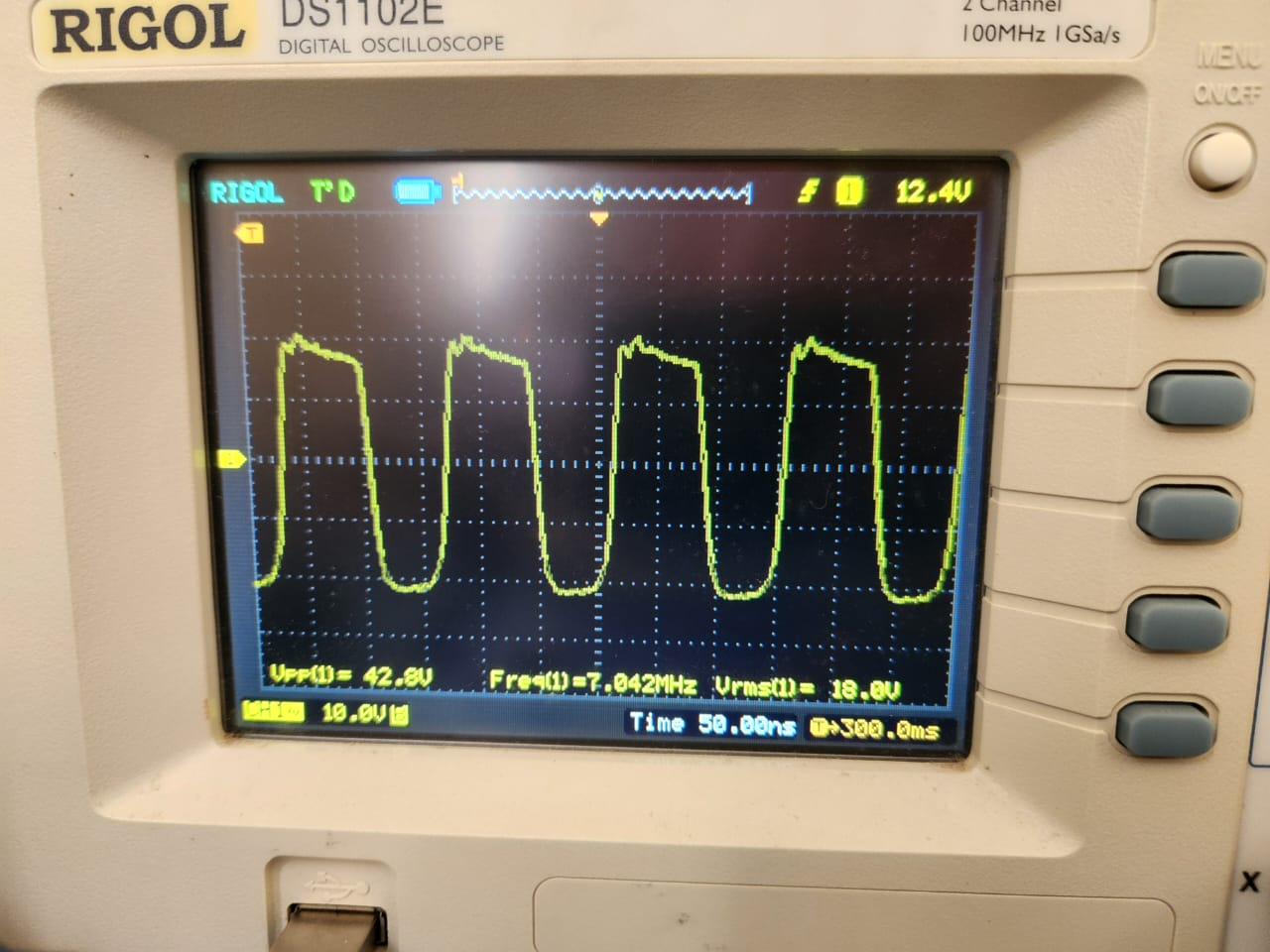Eventually, I settled on an L-match configuration with the shunt element placed on the driver side, which has lower impedance than the MOSFET’s input. This goes against convention, as the shunt element is typically placed on the higher impedance side. Yet, to my surprise, this unconventional setup worked significantly better. I think this is because this LC network forms a low-pass filter, which removes frequencies above a certain cut-off frequency. In my case, the values I’ve used would have a cut-off near 7 MHz. However, this filter could be tweaked to improve performance. It seems these values are not too critical. If you reduce the cut-off frequency, you would have a lower voltage at the MOSFET’s gate.