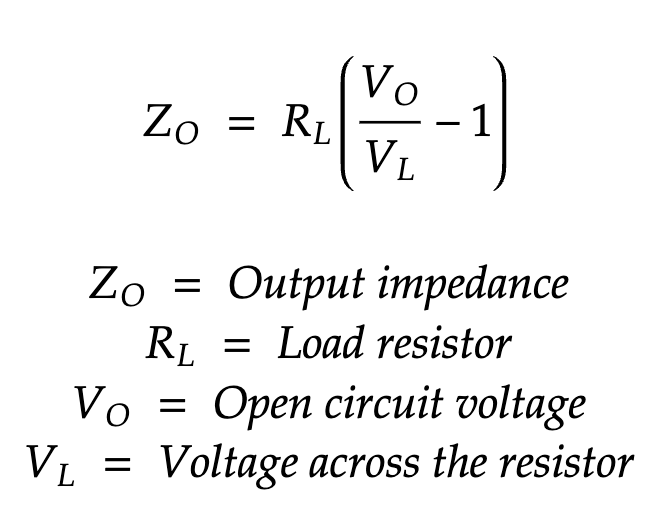 I tried to be methodical about designing the matching network. I started off by determining the output impedance of the driver stage by loading it with different resistors and recording the voltages. Here is the formula: