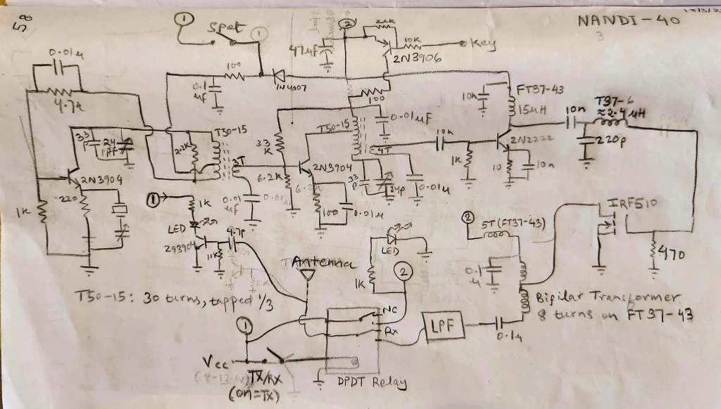 I named the finished transmitter “Nandi-40” because I live near Nandi Hills, and “40” refers to the 40m wavelength of the radio waves it produces. With a fully charged 12 V battery, it puts out about 10-12 watts of RF energy. With a 9V supply, it delivers about 4 watts. It definitely exceeded my design goals. Now it is time to see if it can cross the ocean like Fleming’s transmitter!